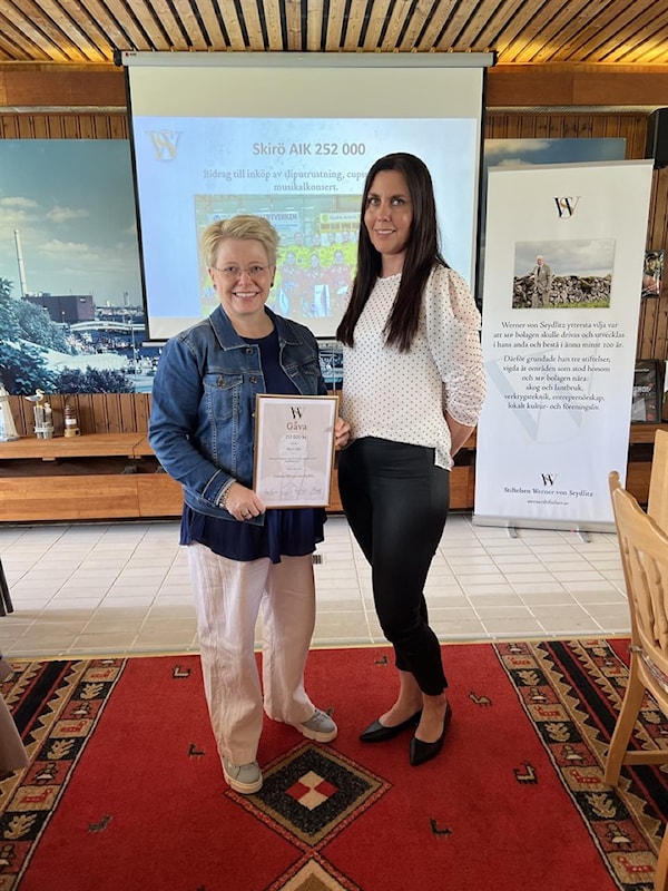 Skirö AIK fick idag ta emot gåvobevis från Stiftelsen Werner von Seydlitz vid Wernerdagen på Farstorps gård. Skirö AIK har fått 252 000 kronor sedan Wernerdagen i fjol.