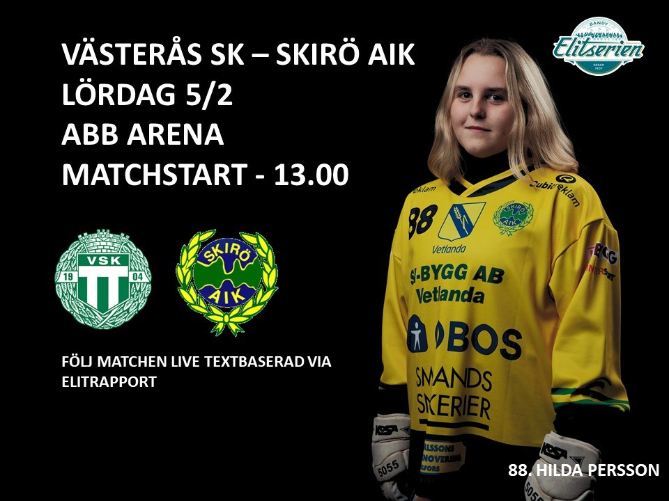Ny bortamatch väntar för Skirö dam. Tuffare uppgift än senaste matchen mot Mölndal. Fördelen nu är att idag ligger pressen på Västerås. Matchstart klockan 13.00.