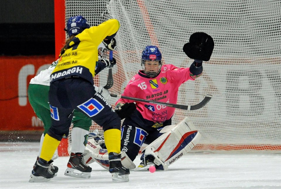 90 minuter regn. Men seger med 3-5 (1-4) mot Mölndal. -Jag hade två olika taktiska planer, en för bra väder och en för snö. Båda gick åt helsicke, men tjejernas fighting spirit avgjorde, säger tränaren Leif Hedberg. Segern innebär med största sannolikhet att Skirö dessutom är klart för slutspel. -Ja, för två av de tre lag vi har bakom oss når inte våra tio poäng, säger Hedberg. Förhållandena var besvärliga i Mölndal. - Det var svårt att få till något konstruktivt spel. Det blev mest lyft och lyror. Men jag var samtidigt rädd för att det kunde blivit värre. Hade nederbörden varit snö hade det blivit så. Skirö tog ledningen med 1-0 efter ett långskott från sargen av Tove Karlsson (bilden). Efter en mölndalsreducering gav Klara Volmerson på nytt Skirö ledningen med 2-1. En ledning som Kicki Sigfridsson ökade på till 3-1 via hörna och som Elin Karlsson spädde på till 4-1 innan halvtidsvilan. -Det kändes skönt att gå till paus med en 4-1-ledning, men frågan är om inte det var något mål för mycket? Mölndal kunde gott och väl haft ytterligare något mål, säger Hedberg. De målen föll i stället i regnet i andra halvlek. Det blev 4-2 och 4-3. -Så kom vi i en kontring där vi fick en straff. Emma Drott missade två straffar hemma mot Mölndal senast, men den här satte hon bollen i nät och så stod det 3-5. Därmed fem målskyttar av fem möjliga. Strax därefter, med 15 minuter kvar, tog Mölndal timeout. -Då coachade vi laget tufft. Och lät startelvan spela hela den återstående tiden. Och vi klarade det, säger Hedberg. Det var ett lika glatt som dyblött gäng som lämnade isen. -Skönt. Fyra matcher kvar och redan är vår målsättning klar, att spela slutspel. Det finns inte på kartan att två lag passerar oss nu, avslutar Hedberg. Nu spelar Skirö redan på lördag då laget möter Västerås borta. Sannolikt ett tuffare motstånd på isen men tveklöst mycket bättre yttre förutsättningar!