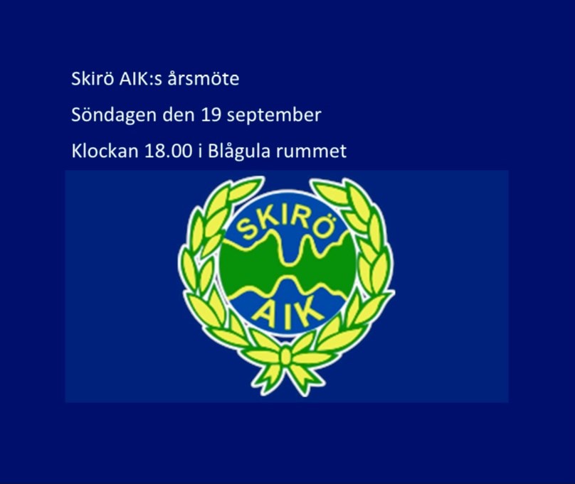Årsmöte - Skirö AIK Söndag den 19 september Klockan 18.00 i Blågula rummet