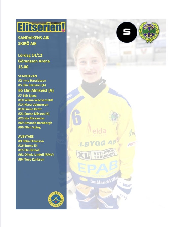 Matchdag, Göransson Arena klockan 15.00. Följ oss på Elitrapport eller Bandygrytan.