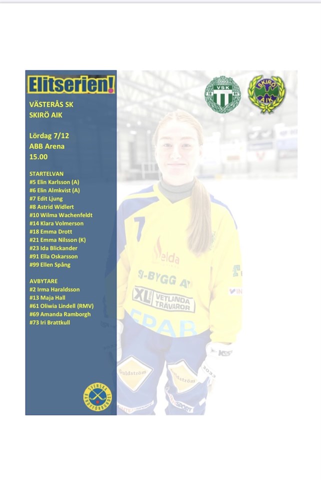 Matchdags Västerås SK - Skirö AIK ABB Arena Syd 15.00 Följ matchen på Elitrapport Dam 7 dec 2019 0kommentarer